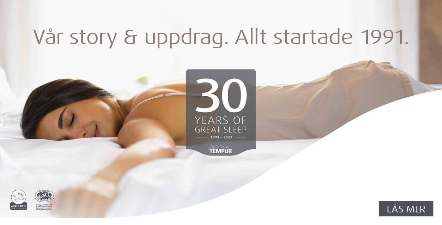 Ingenting annat är som TEMPUR® och inget annat är som vår historia. Från NASA-teknologin skapade vi 1991, världens första viskoelastiska madrass och kudde. I trettio år har vi ägnat oss åt att förfina, förbättra och ständigt utveckla TEMPUR®-materialet så att det ger den perfekta balansen mellan komfort och stöd, vilket säkerställer att det förblir ljusår före efterföljande minneskum och andra material. Vi är säkra på det eftersom receptet bakom vårt material fortfarande är en väl bevarad affärshemlighet. Idag, har vi ett komplett utbud av innovativa sömnprodukter som ger perfekt komfort och stöd till alla. Vårt uppdrag är att hjälpa människor över hela världen att sova bättre, längre, djupare.